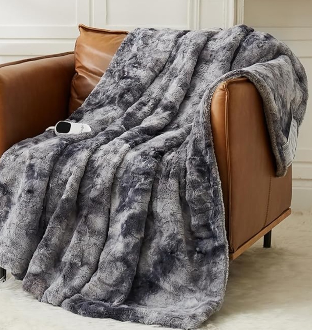 Stay warm and comfortable with the Heated Blanket Electric Throw, designed to provide cozy warmth and luxurious softness during cold days and nights. Measuring 50″ x 60″, this heating blanket features a premium faux fur top and ultra-soft Sherpa lining, giving you a plush and relaxing feel whether you’re on the couch, in bed, or working from home. With 10 adjustable heat levels, you can easily choose the perfect temperature for personalized comfort. The built-in auto-off timer with 1, 2, 4, 6, or 8-hour settings ensures safety and energy efficiency, while the overheat protection system and ETL certification offer reliable peace of mind. Perfect for winter lounging, movie nights, or adding extra warmth to your bedding, the Homemate electric throw combines style, safety, and comfort in one convenient blanket.