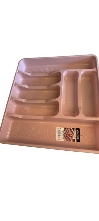 A cutlery tray is an organized storage solution for utensils, designed to fit inside kitchen drawers. It features multiple compartments for neatly separating forks, knives, spoons, and other utensils, making it easy to access and maintain order in the kitchen. Ideal for keeping cutlery tidy and easily accessible.