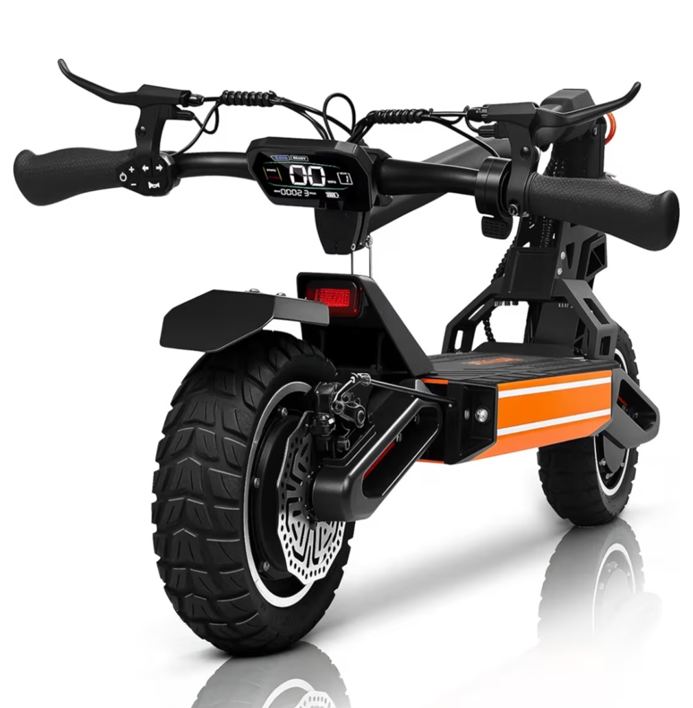 Experience powerful performance and ultimate riding freedom with this 2000W Peak Power Electric Scooter for Adults, designed for both city commuting and off-road adventures. Equipped with a high-performance motor, it can reach speeds of up to 34MPH, delivering smooth acceleration and reliable power for hills and long rides. The 48V 20.8Ah high-capacity battery provides impressive range, while the three adjustable speed modes allow you to ride comfortably whether you’re cruising, commuting, or seeking a faster thrill. Built with 10-inch off-road tires, dual suspension, and dual disc brakes, this scooter ensures superior stability, shock absorption, and responsive stopping power on different terrains. Its foldable design makes it easy to store or carry, making it perfect for daily travel, weekend rides, or outdoor exploration. Durable, powerful, and convenient, this fast electric scooter is engineered to deliver a smooth, safe, and exciting riding experience. 🛴⚡
