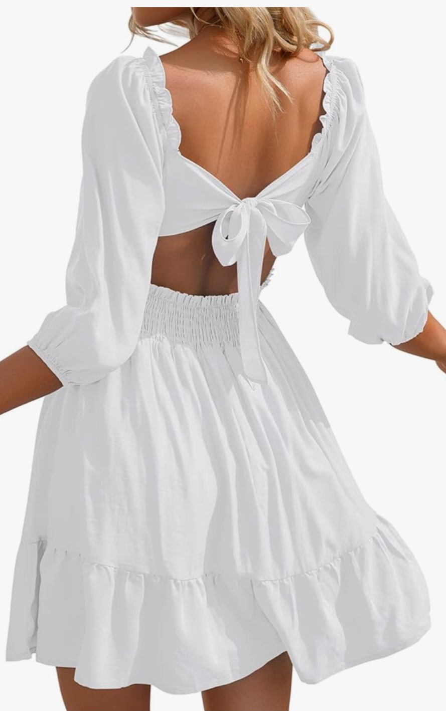 The Women’s Summer Tie Back Dress with Square Neck and Lantern Sleeves is a charming blend of comfort and effortless style, perfect for warm-weather days. Designed with a flattering square neckline that can also be worn off the shoulder, this mini dress adds a touch of elegance while keeping your look fresh and feminine. The soft, breathable fabric ensures all-day comfort, while the stylish lantern sleeves create a trendy silhouette that stands out. A beautiful tie-back detail not only enhances the fit but also adds a playful, adjustable element to the design. Ideal for casual outings, beach trips, brunch dates, vacations, or summer parties, this versatile mini dress pairs perfectly with sandals, heels, or sneakers for an effortlessly chic look.